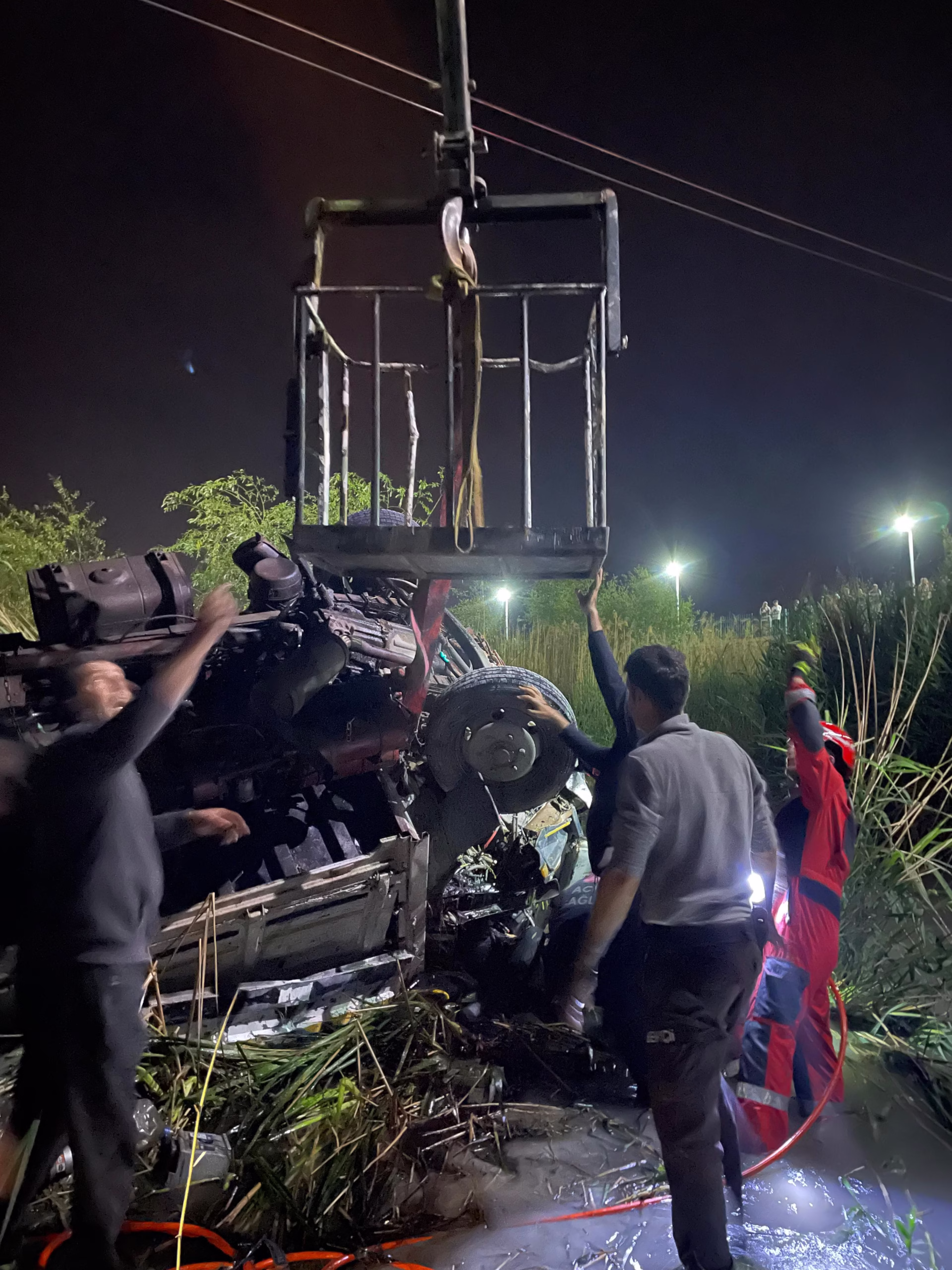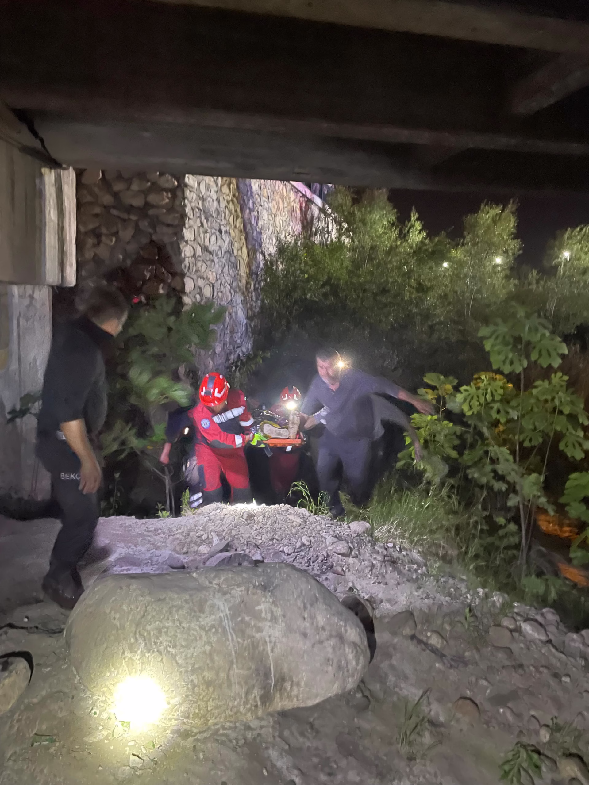 Kısa sürede bölgeye ulaşan sağlık, itfaiye ve polis ekipleri kamyonete çarpıp köprüden aşağıya düşen kamyondaki sürücünün araç içerisinde sıkıştığını belirlediler. Adeta hayat kurtarmak için ekipler zamanla yarıştılar.