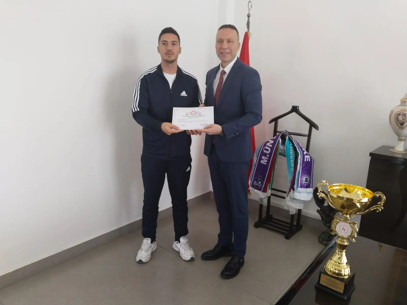 2025-2026 Eğitim Öğretim Yılı Muğla Okul Sporları kapsamında düzenlenen çeşitli branşlardaki müsabakalarda dereceye giren Milaslı öğrenciler, kazandıkları madalya ve kupalarla Milas Kaymakamı Mustafa Ünver Böke’yi makamında ziyaret etti.