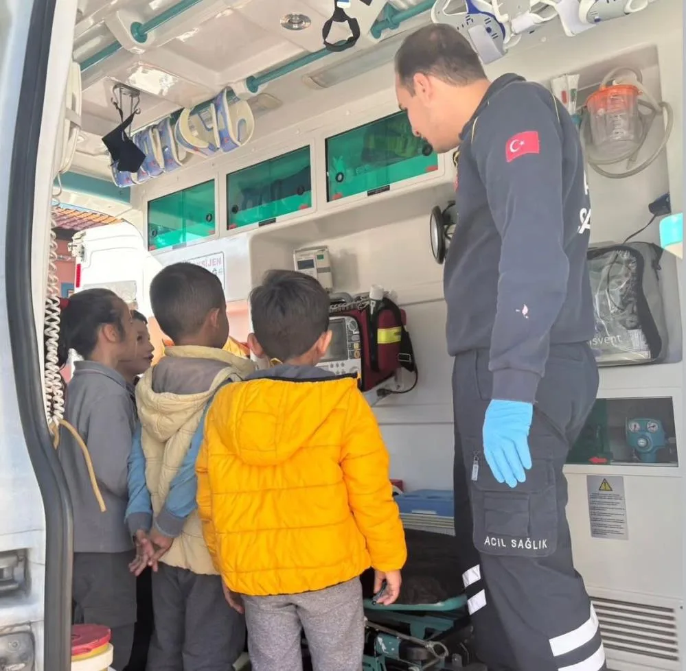Etkinliklerin eğitim ayağında, ekipler Zübeyde Hanım Anaokulu, METEM Anaokulu, Atatürk İlkokulu, Tek Mehmet Akif Ersoy Anaokulu ve İlkokulu ile Madenler İlkokulu’nu ziyaret ederek öğrencilere ambulansı tanıttı. Minik öğrenciler ambulansın iç donanımını yakından inceleme fırsatı bulurken, acil durumlarda 112 Acil Çağrı Hattı’nın doğru kullanımı hakkında bilgilendirildi.