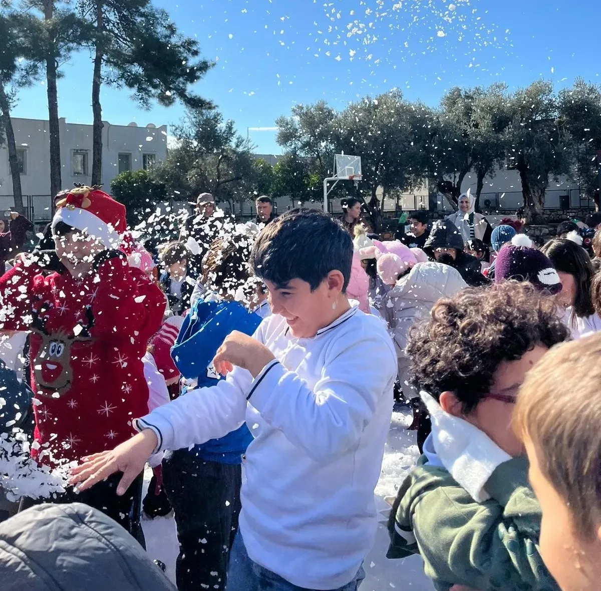 Okuldan yapılan açıklamada “Her çocuk yeni yılda kar görmek ister. Bunun için bir nebze sembolik de olsa o duyguyu yaşatmaya çalıştık. Daha önce kar görmeyen çocukların coşkusu görmeye değerdi” denildi.