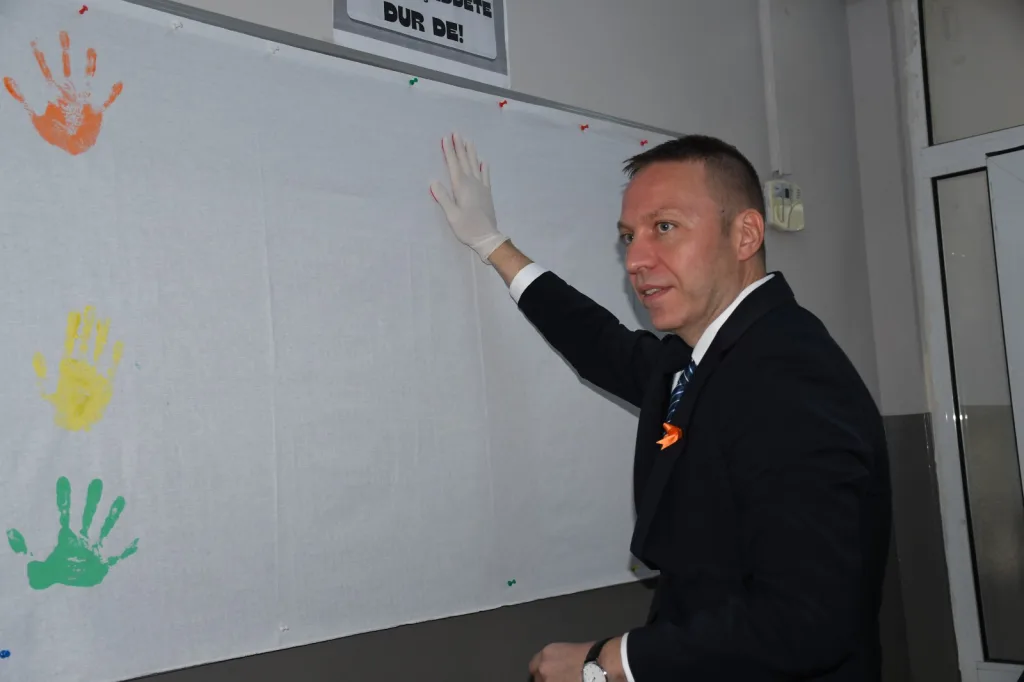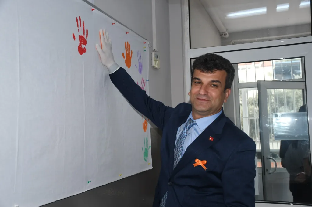 Bir haftadır sürdürülen farkındalık çalışmaları, “Kadına yönelik şiddete dur de; sevgini göster” sloganıyla düzenlenen final etkinliğiyle tamamlandı. Programa katılan davetlilere turuncu kurdele takılarak, kadına yönelik şiddetle mücadelenin simgesel rengi olan turuncu üzerinden güçlü bir mesaj verildi. Ardından Milas Kaymakamı Böke ve eşi, İlçe Milli Eğitim Müdürü Bal ve eşi, şube müdürleri ve diğer katılımcılar şiddete karşı duruşu temsil eden panoya el izlerini bıraktı. “Sevgini göster” sloganı doğrultusunda panoya kalp çizimleri yapılarak sevgi ve saygının şiddetin karşısındaki en güçlü değerler olduğu vurgulandı.