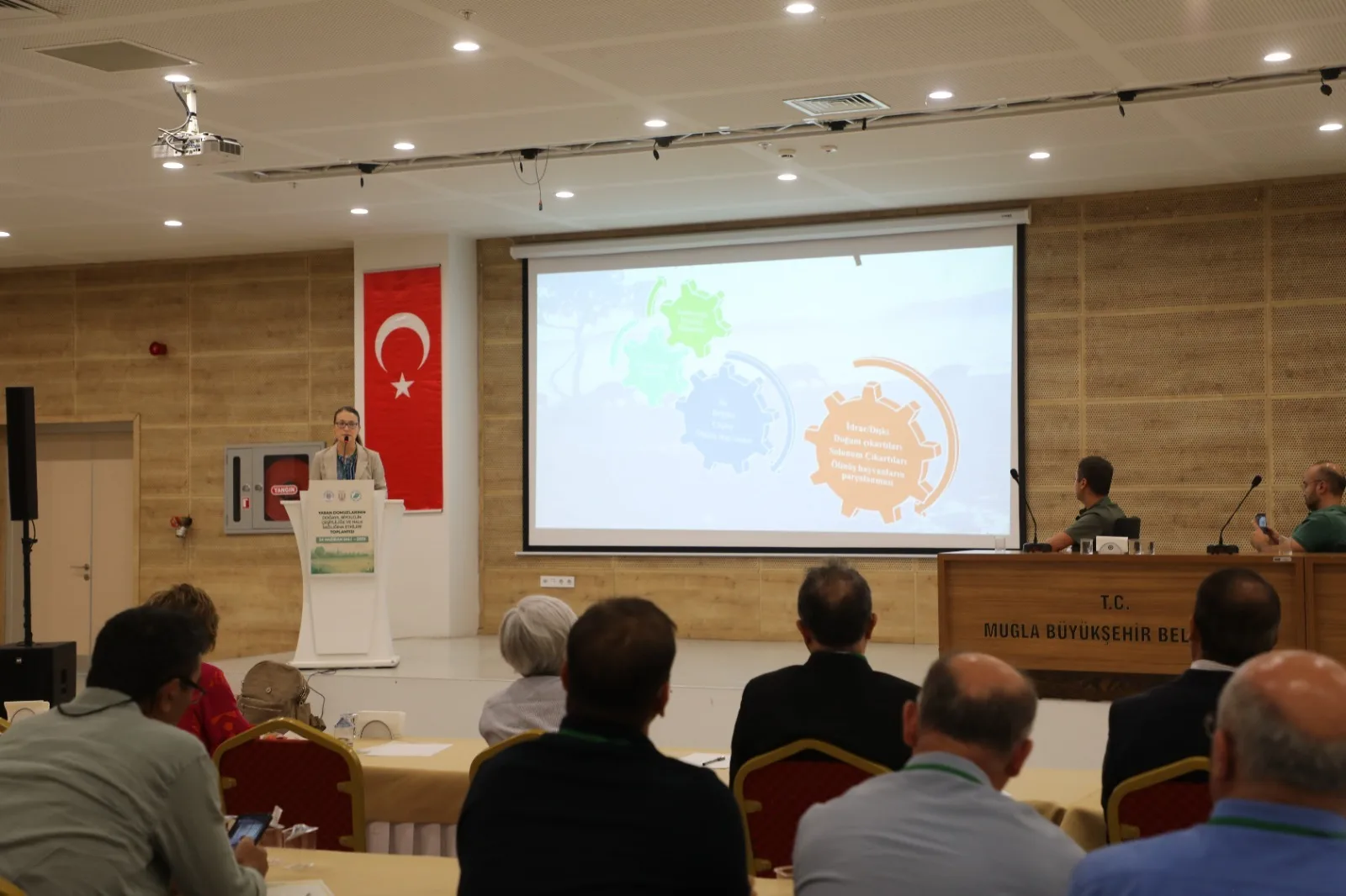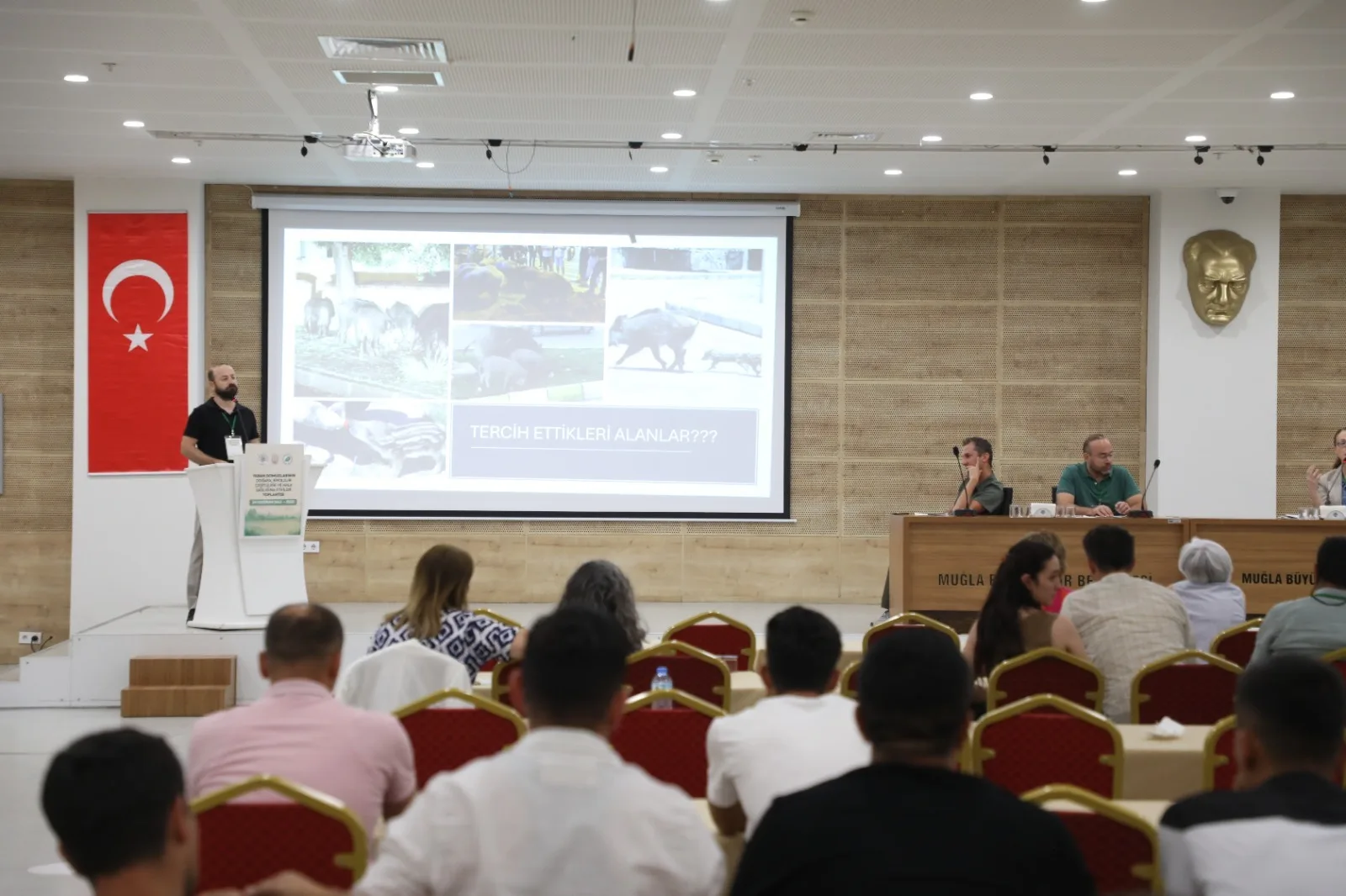 Muğla Büyükşehir Belediyesi ev sahipliğinde, Muğla Sıtkı Koçman Üniversitesi ve Doğa Koruma ve Milli Parklar Genel Müdürlüğü iş birliğiyle düzenlenen “Yaban Domuzlarının Doğaya, Biyolojik Çeşitliliğe ve Halk Sağlığına Etkileri” konulu toplantı, Türkan Saylan Çağdaş Yaşam Merkezi’nde gerçekleştirildi.