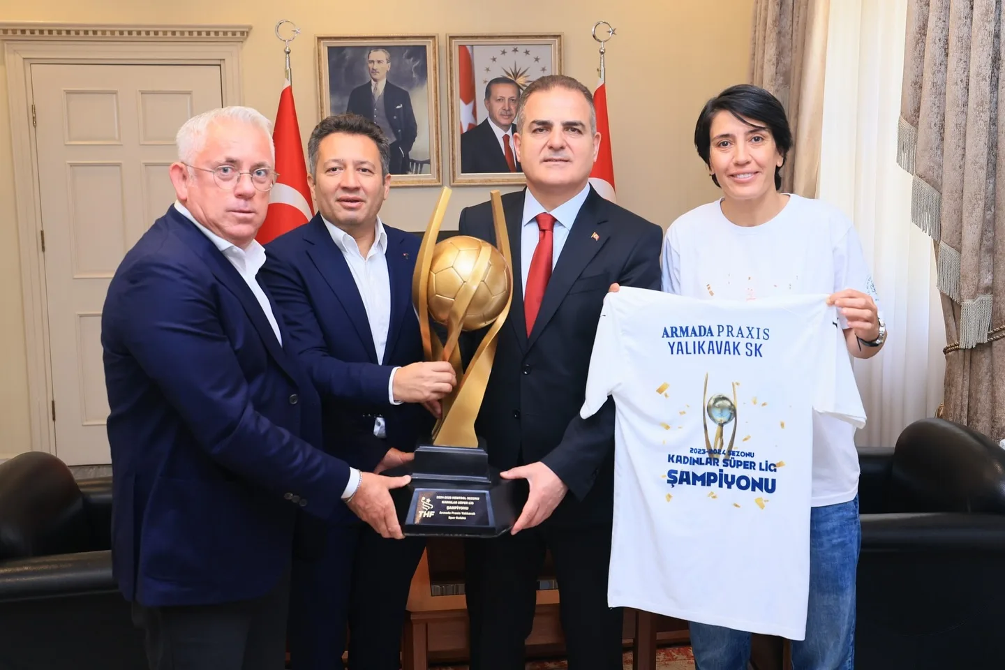 Hentbol Kadınlar Süper Ligi 2024-2025 sezonunu şampiyon olarak tamamlayan Armada Praxis Yalıkavakspor, elde ettiği tarihi başarının ardından Muğla Valisi Dr. İdris Akbıyık’ı makamında ziyaret etti.