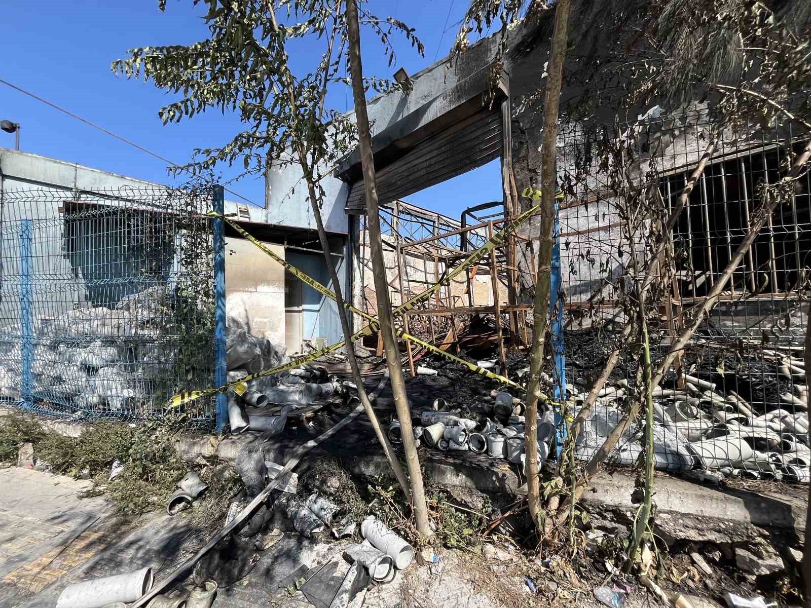 Yangının verdiği hasar ise dron ile havadan görüntülendi. Plastik fabrikasının neredeyse tamamen yandığı ve kullanılamaz hale geldiği görüntülerde yer aldı. Öte yandan çıkan dumanlardan dolayı is kaplayan hastane duvarlarında işçiler temizlik çalışması başlattı. İşçilerin güvenlik önlemi alarak çalıştığı anlar da yine havadan görüntülendi.